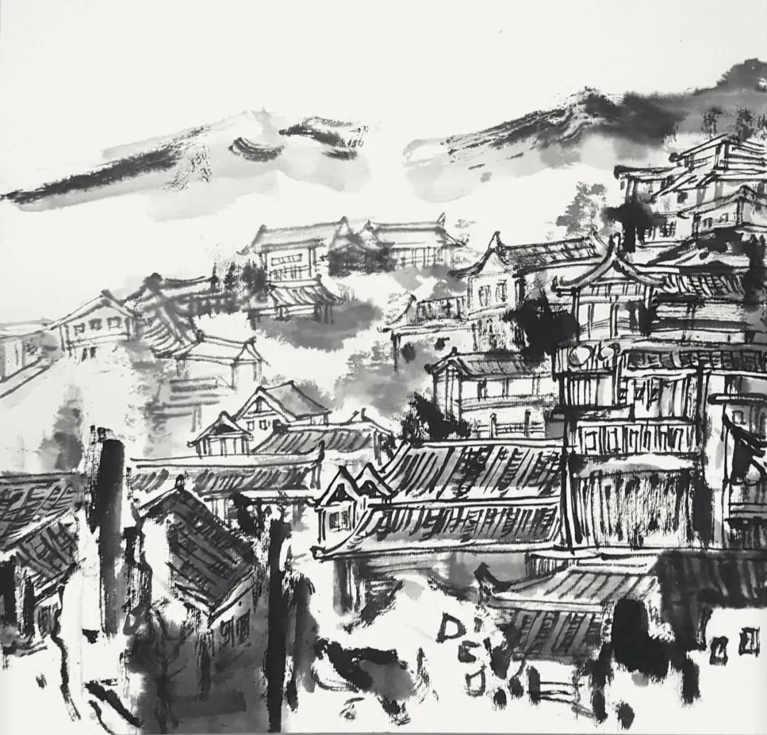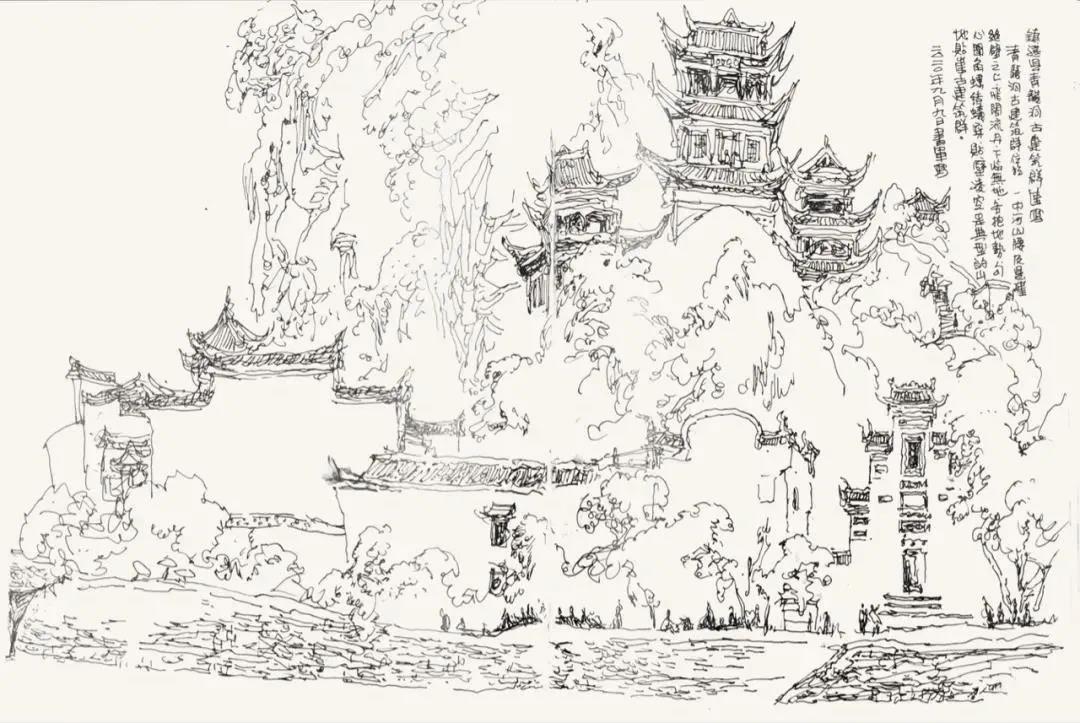 劉書軍《鎮(zhèn)遠(yuǎn)縣青龍洞古建筑群寫生》