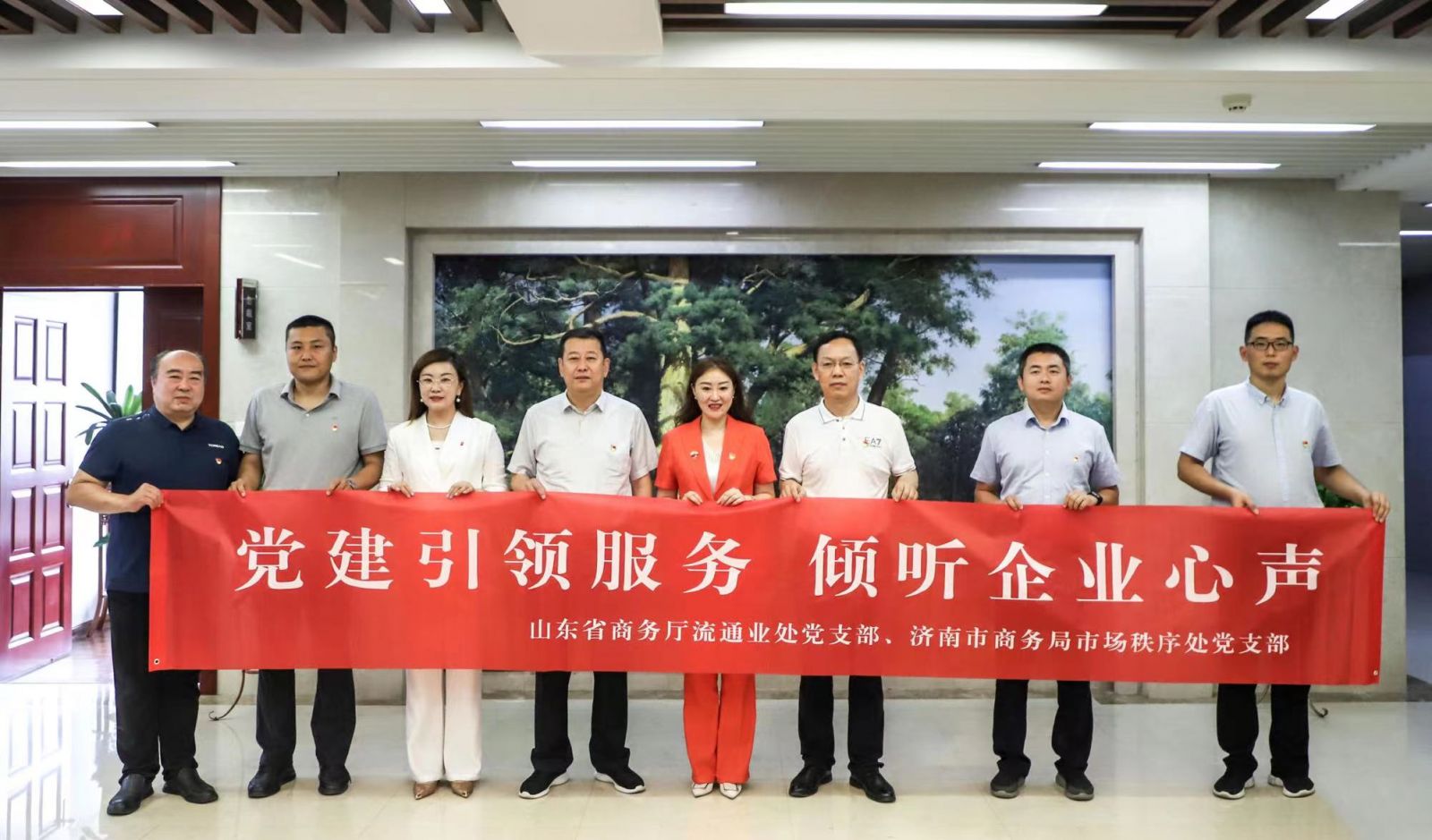 為進(jìn)一步規(guī)范拍賣企業(yè)經(jīng)營(yíng)行為,促進(jìn)全市拍賣行業(yè)健康發(fā)展。6月20日上午,山東省商務(wù)廳流通業(yè)發(fā)展處四級(jí)調(diào)研員郭伯印一行蒞臨金諾國(guó)拍集團(tuán)開展“黨建引領(lǐng)服務(wù) 傾聽企業(yè)心聲”主題調(diào)研活動(dòng)。山東省商務(wù)廳流通業(yè)發(fā)展處主任科員王文博 、濟(jì)南市商務(wù)局市場(chǎng)秩序處二級(jí)調(diào)研員馬光潤(rùn)、濟(jì)南市商務(wù)局市場(chǎng)秩序處二級(jí)主任科員王祥宇、濟(jì)南市商務(wù)局市場(chǎng)秩序處三級(jí)主任科員鄒一鳴、濟(jì)南市商務(wù)局市場(chǎng)秩序處工作人員郭愛民陪同調(diào)研。沃爾德集團(tuán)總裁、金諾國(guó)拍集團(tuán)董事長(zhǎng)商雪梅,金諾國(guó)拍集團(tuán)總裁位琳陪同接待并參加座談。