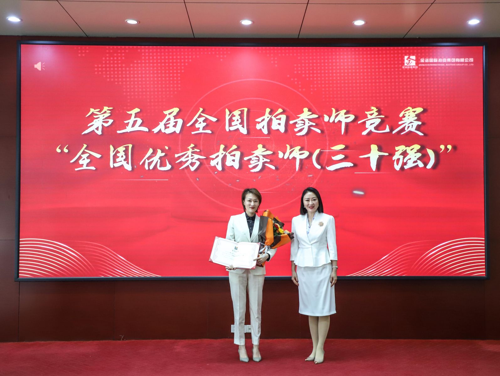 金諾國拍集團(tuán)總裁位琳首先宣讀了《關(guān)于表彰第五屆“中拍杯”全國拍賣師競(jìng)賽獲獎(jiǎng)人員的決定》,“經(jīng)研究決定予以嘉獎(jiǎng),希望主金坤、劉俊、蔡小卉三位獲獎(jiǎng)拍賣師繼續(xù)堅(jiān)定職業(yè)信仰、傳承專業(yè)匠心,走在前,做表率;也希望全體同仁以榜樣凝聚力量,繼續(xù)奮勇爭(zhēng)先,譜寫金諾國拍集團(tuán)高質(zhì)量發(fā)展新篇章,為拍賣行業(yè)發(fā)展作出新的更大貢獻(xiàn)!”
