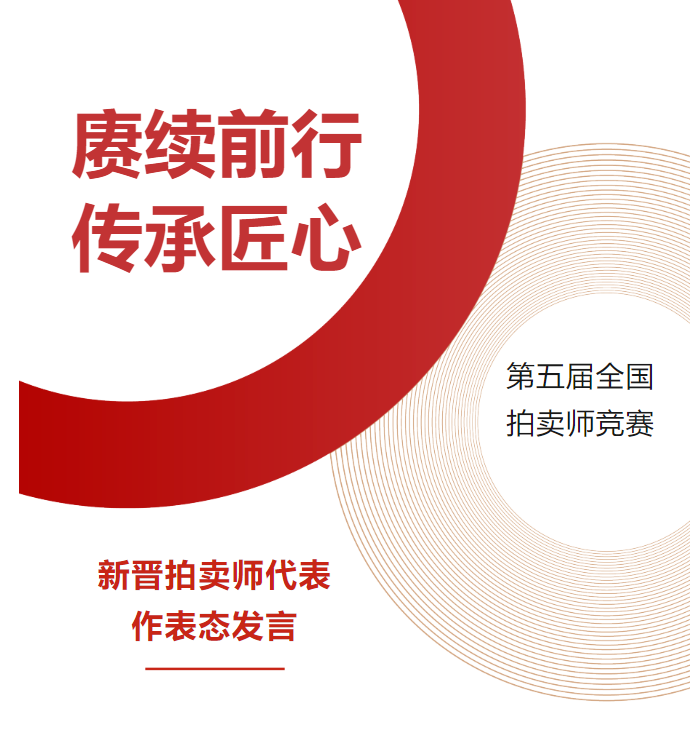 我是第35期全國(guó)拍賣師執(zhí)業(yè)資格考試合格人員劉雨佳。此時(shí)此刻作為新拍賣師代表在此發(fā)言,我感到無比榮幸。首先我要對(duì)在第五屆全國(guó)拍賣師競(jìng)賽中取得佳績(jī)的三位優(yōu)秀拍賣師表達(dá)祝賀。我們將以三位優(yōu)秀拍賣師為榜樣,汲取奮進(jìn)力量,展現(xiàn)金諾國(guó)拍集團(tuán)新一代拍賣師的風(fēng)采。